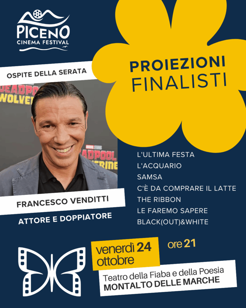 Nel corso della serata di Montalto delle Marche, Venditti sarà ospite del Piceno Cinema Festival 2025 per incontrare il pubblico e condividere la sua esperienza tra cinema, voce e interpretazione.